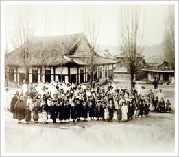 - 1910.12.4.세브란스 병원 부지에 한국 전통 궁궐 양식의 남문밖교회 예배당 헌당.